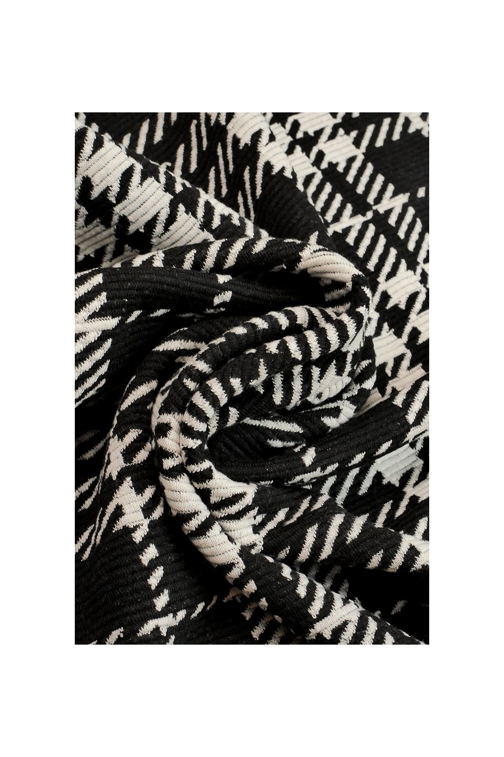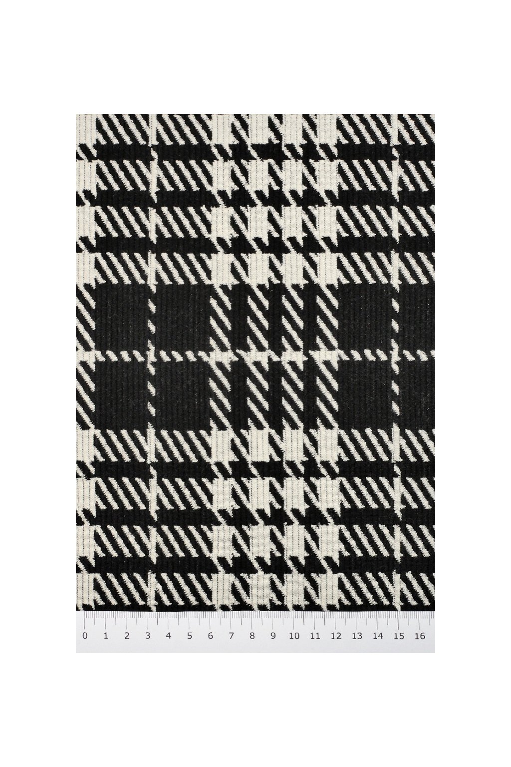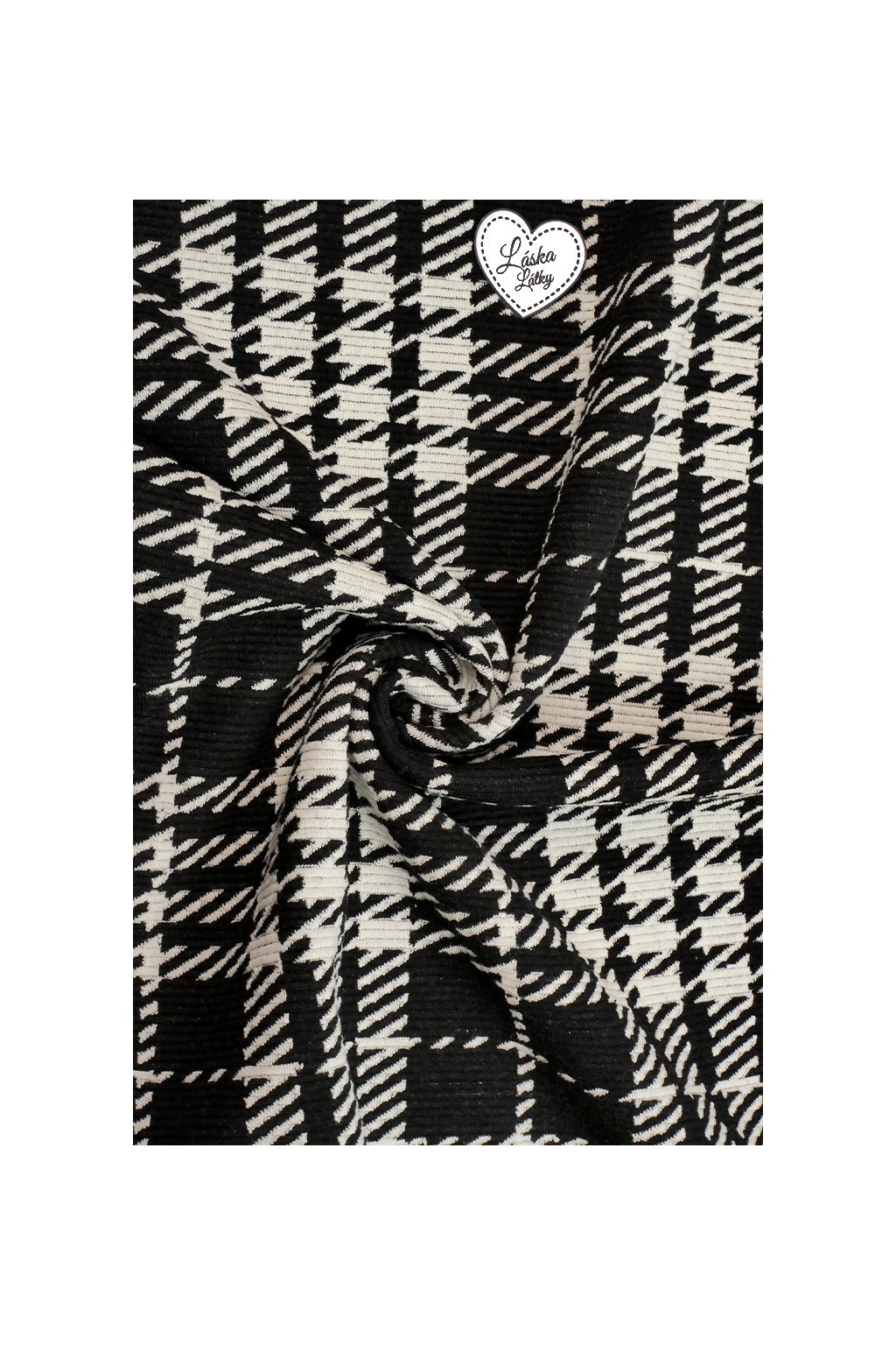 ÚPLETOVÁ KABÁTOVINA S ŽEBROVÁNÍM, ČERNOBÍLÉ KÁRO