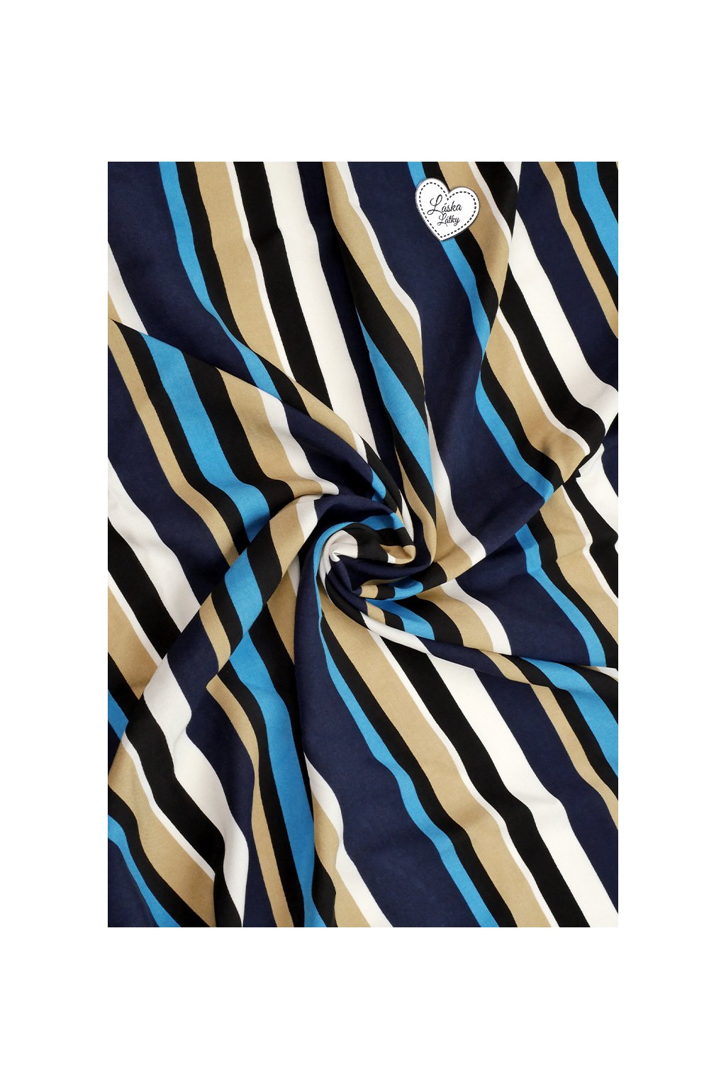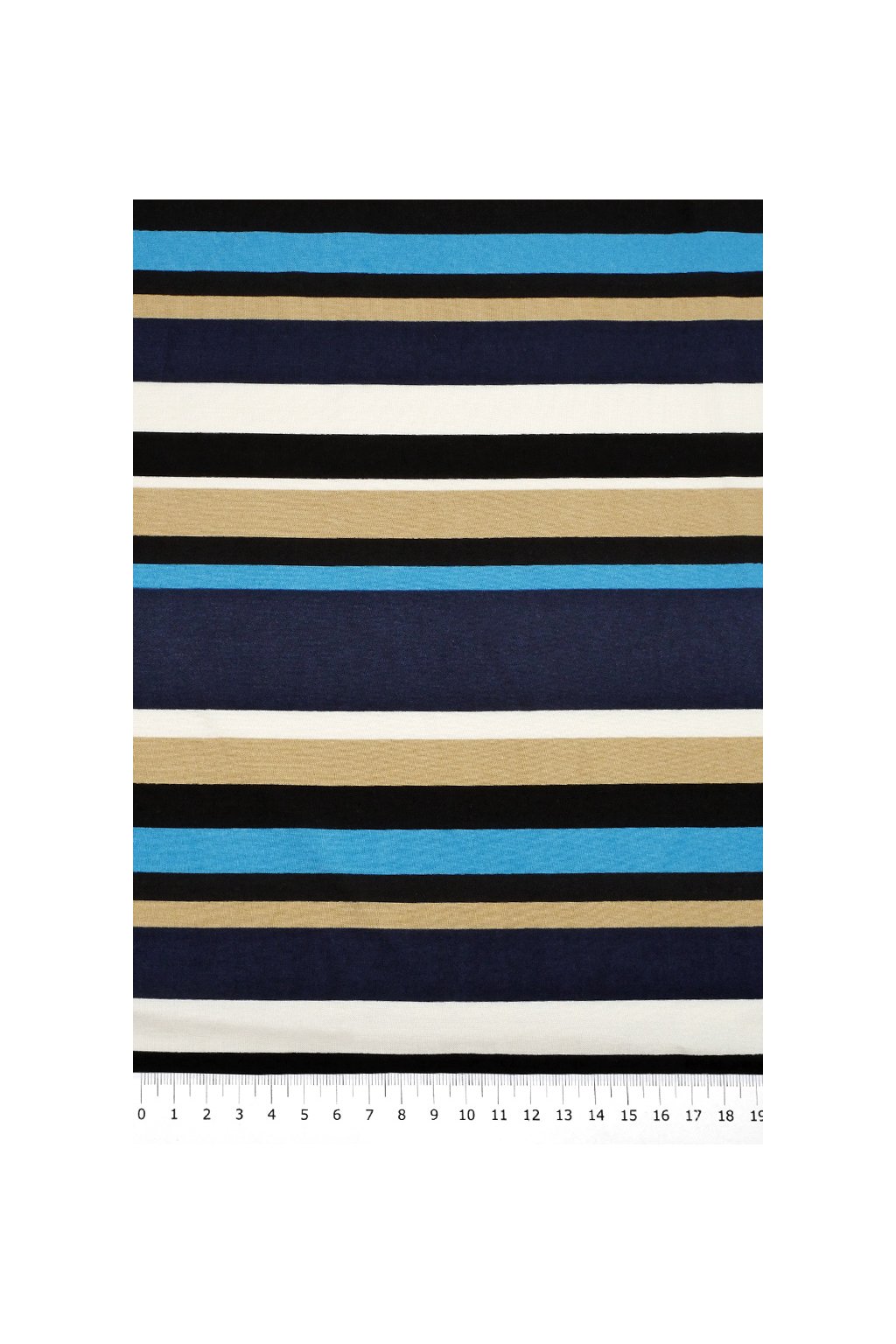 VISKÓZOVÁ ŠATOVKA, PRUHY BÉŽOVÉ S MODROU A SMETANOVOU