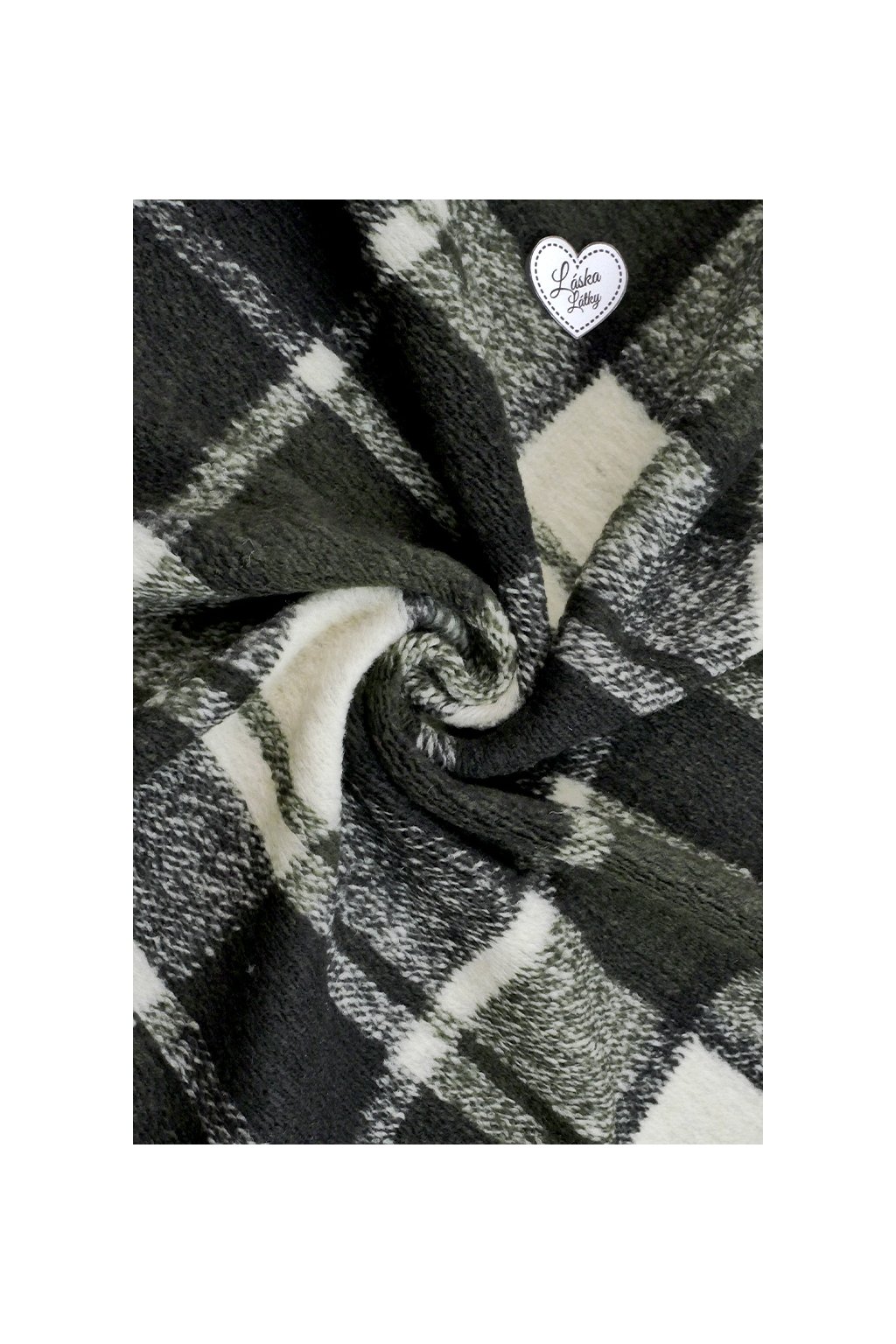 VLNĚNÁ KABÁTOVINA - TMAVÉ KHAKI, ŠEDÉ KÁRO
