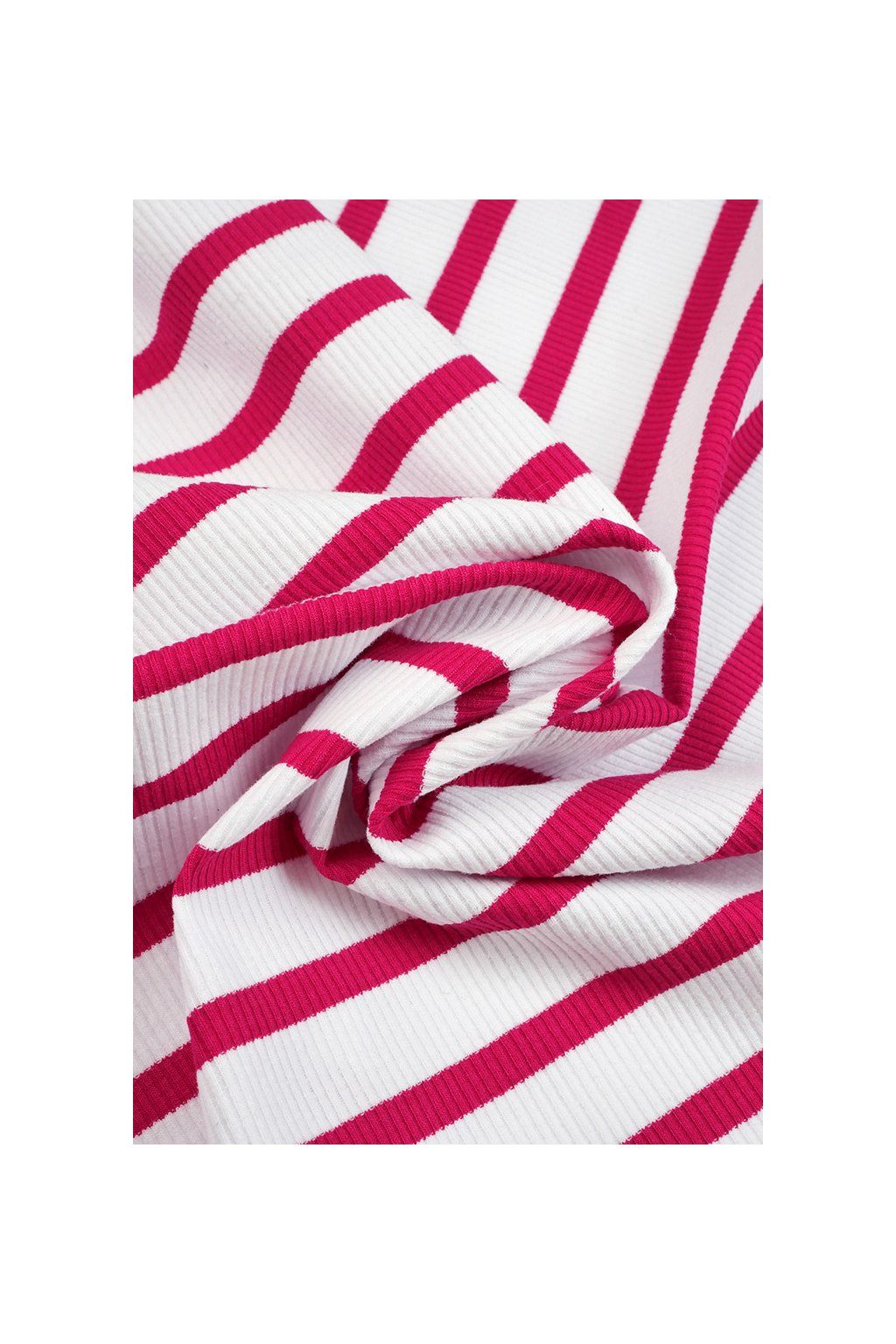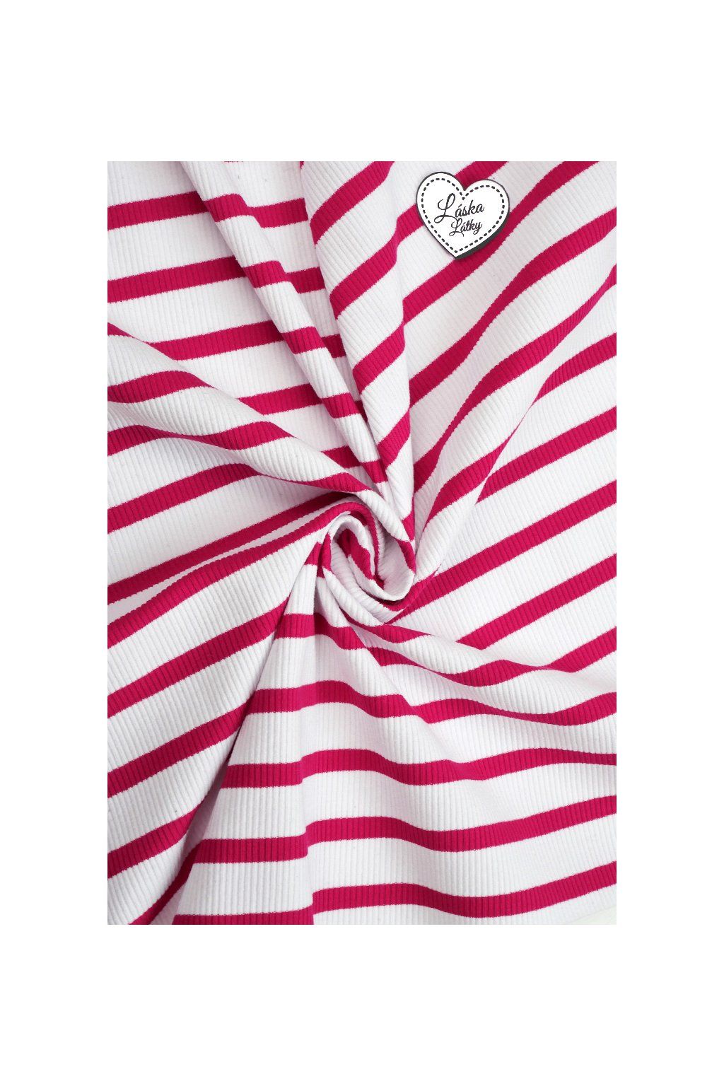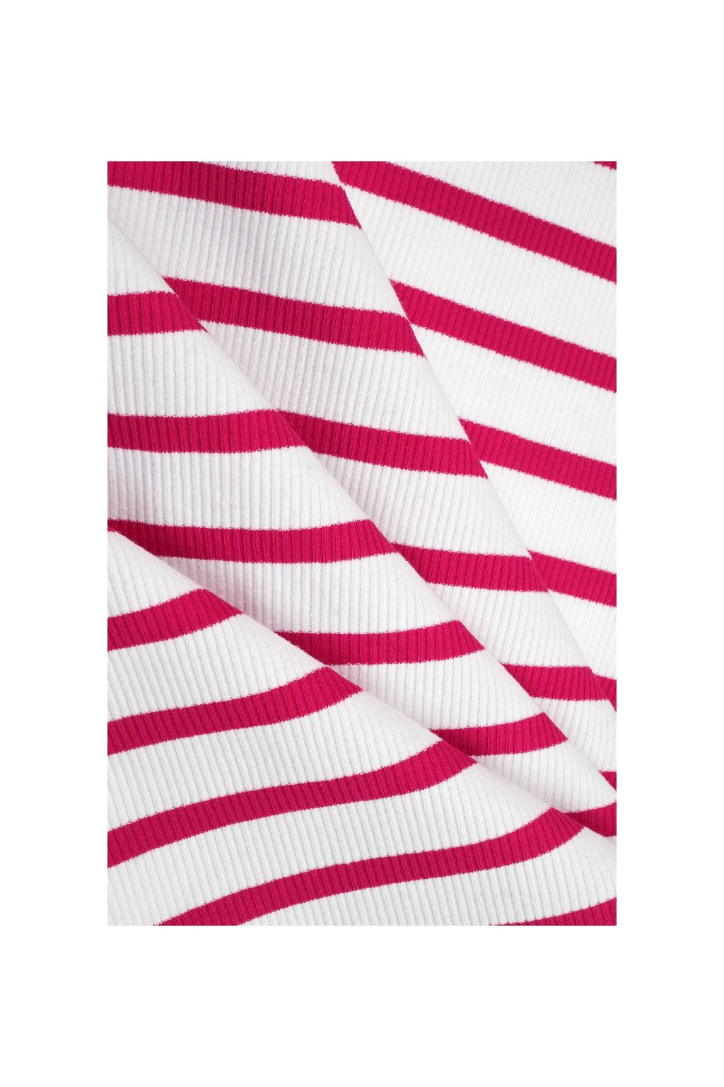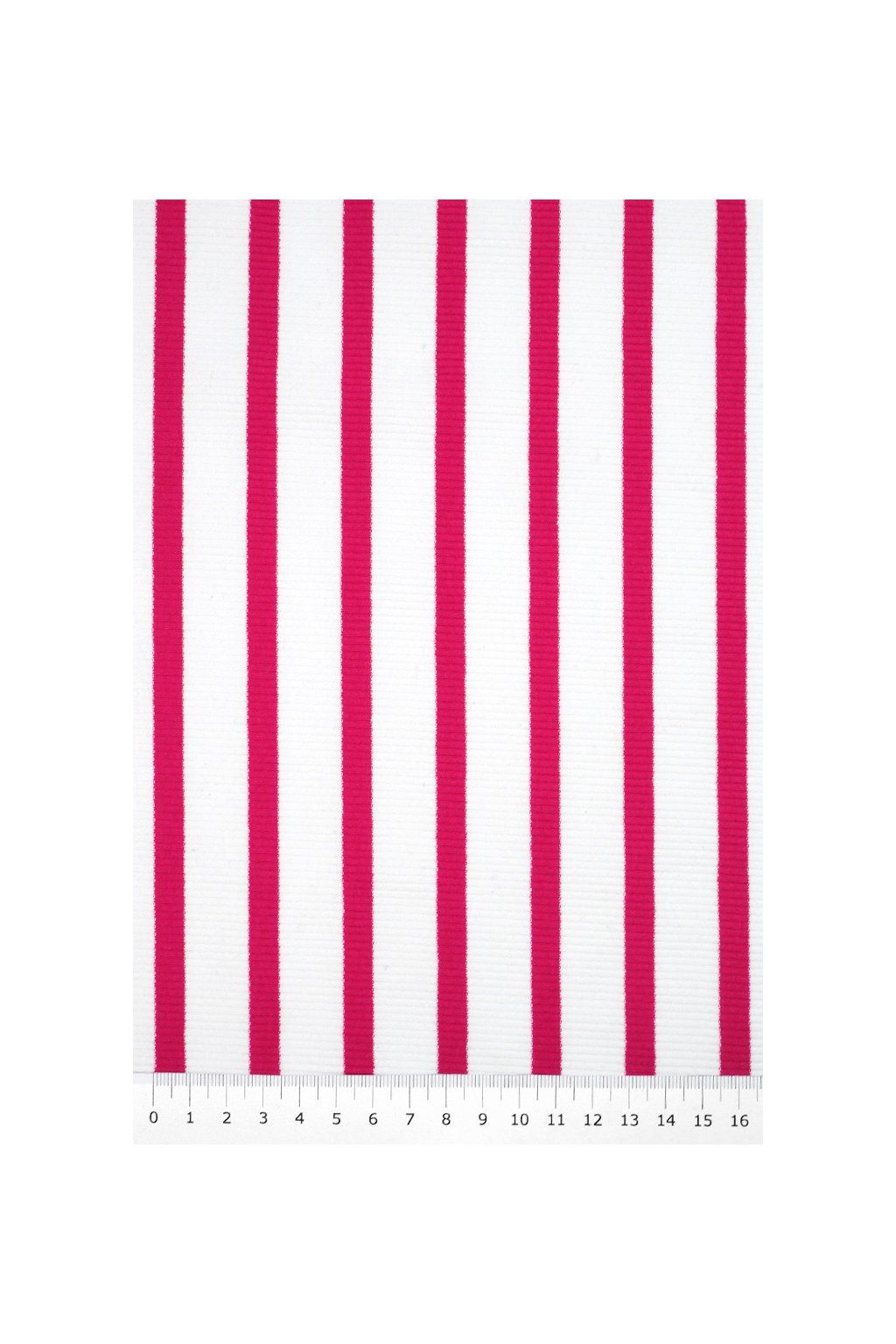 ŽEBROVANÝ BAVLNĚNÝ ELASTICKÝ ÚPLET, MALINOVÉ A BÍLÉ PROUŽKY
