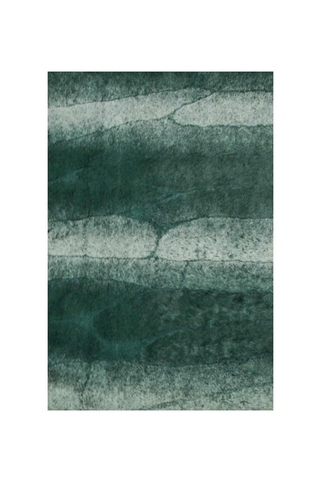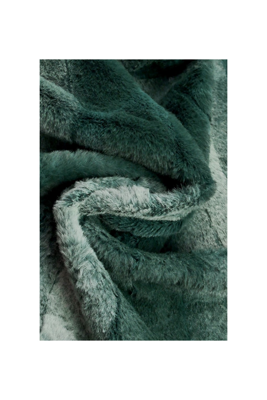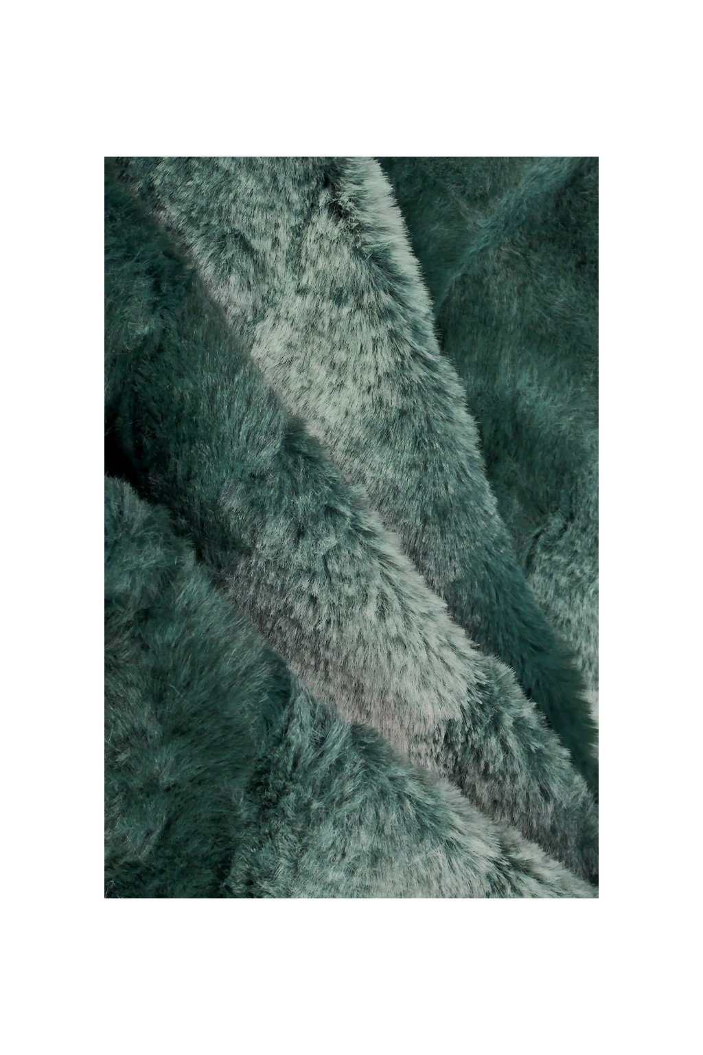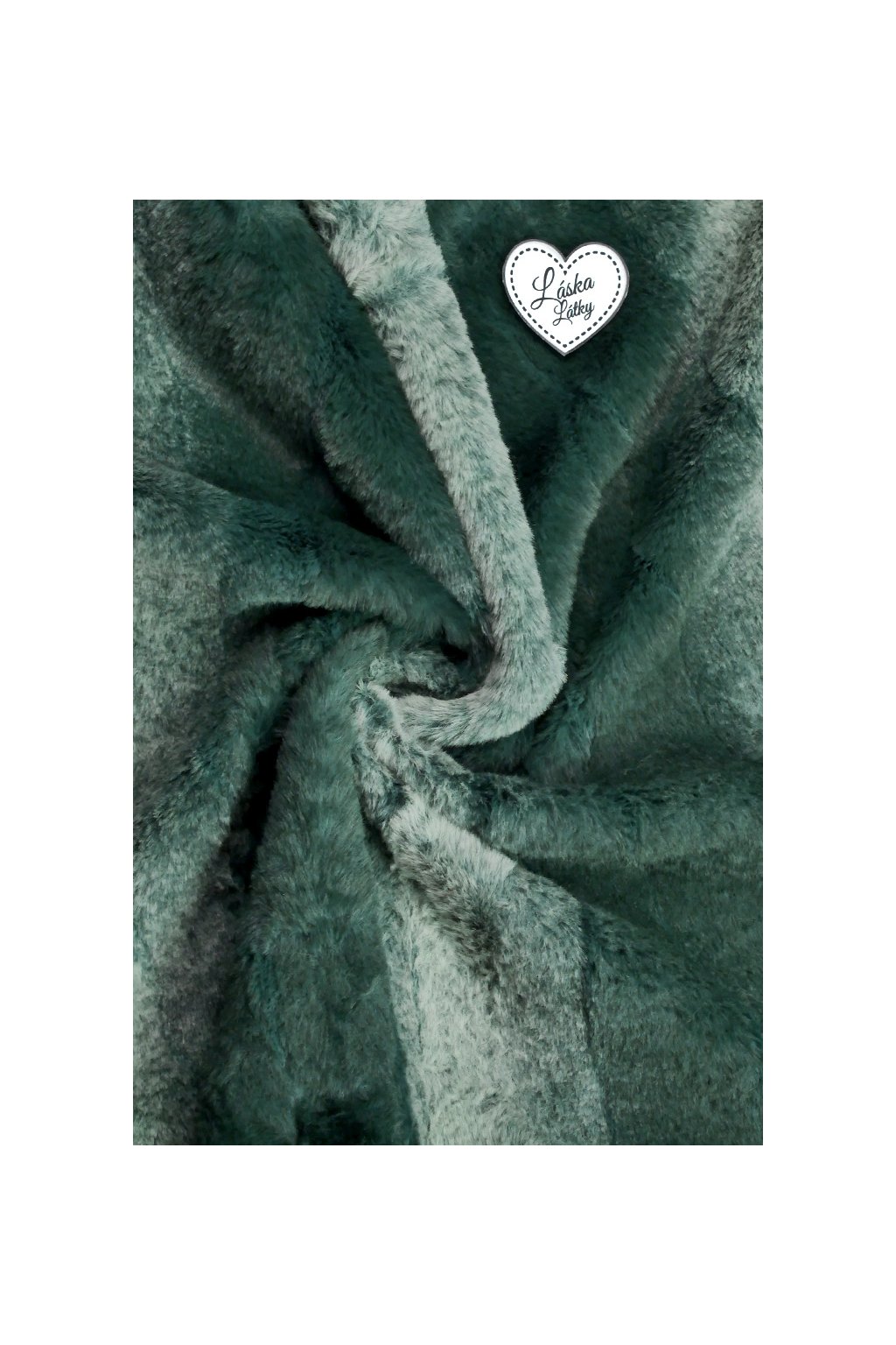 Moderní imitace kožešiny petrolejové barvy s bílým nádechem. Barvy jdou v pruzích.