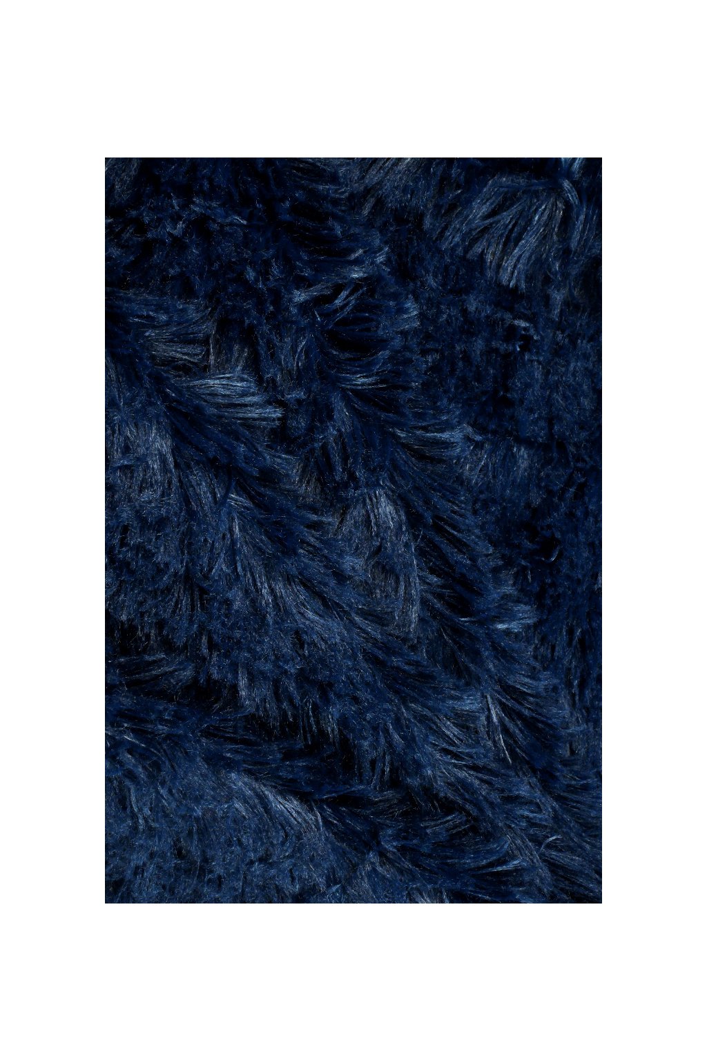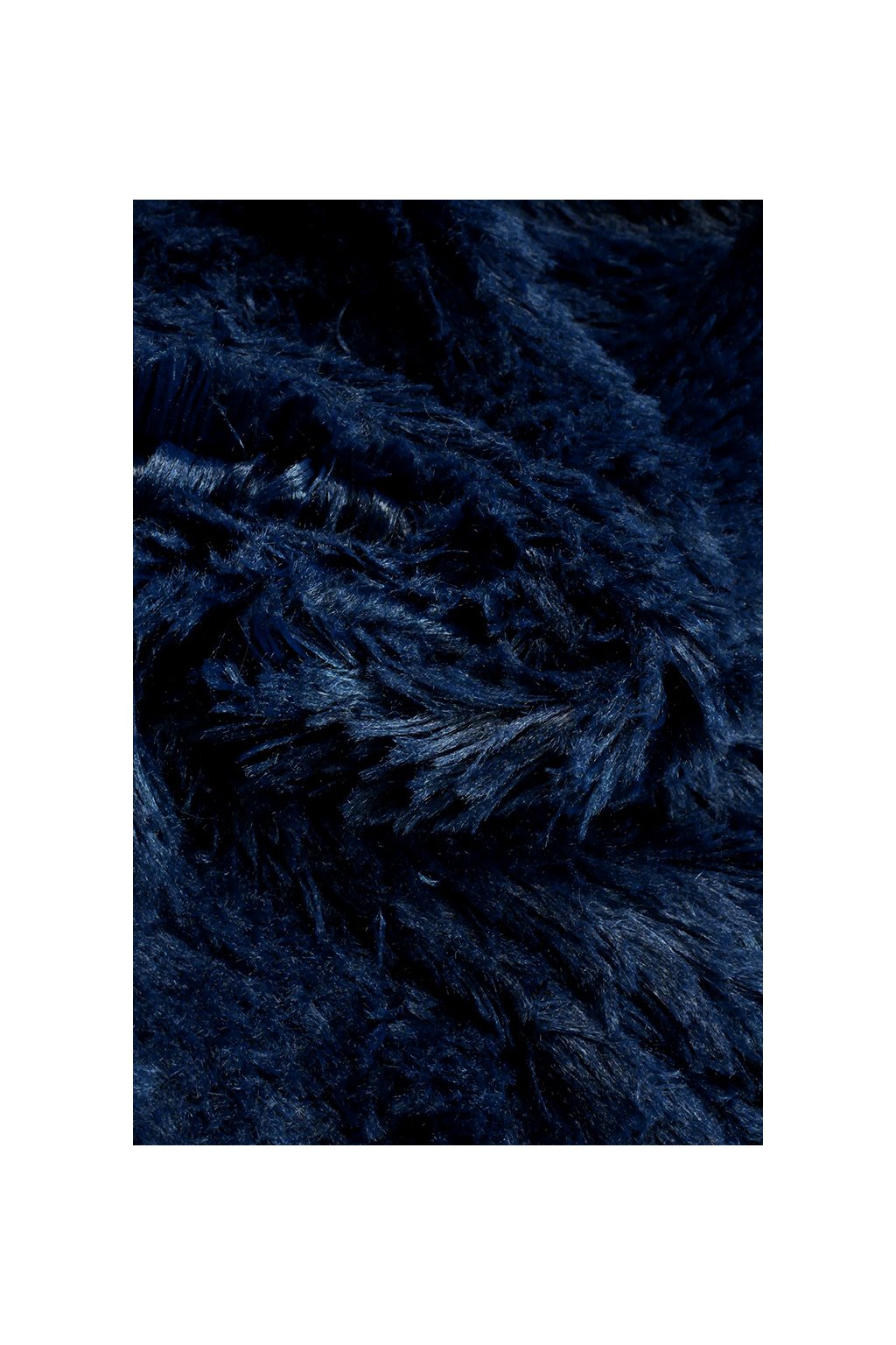 Jednostranný hustý a jemný plyš tmavě modré barvy. Délka vlasu cca 2,5 cm.