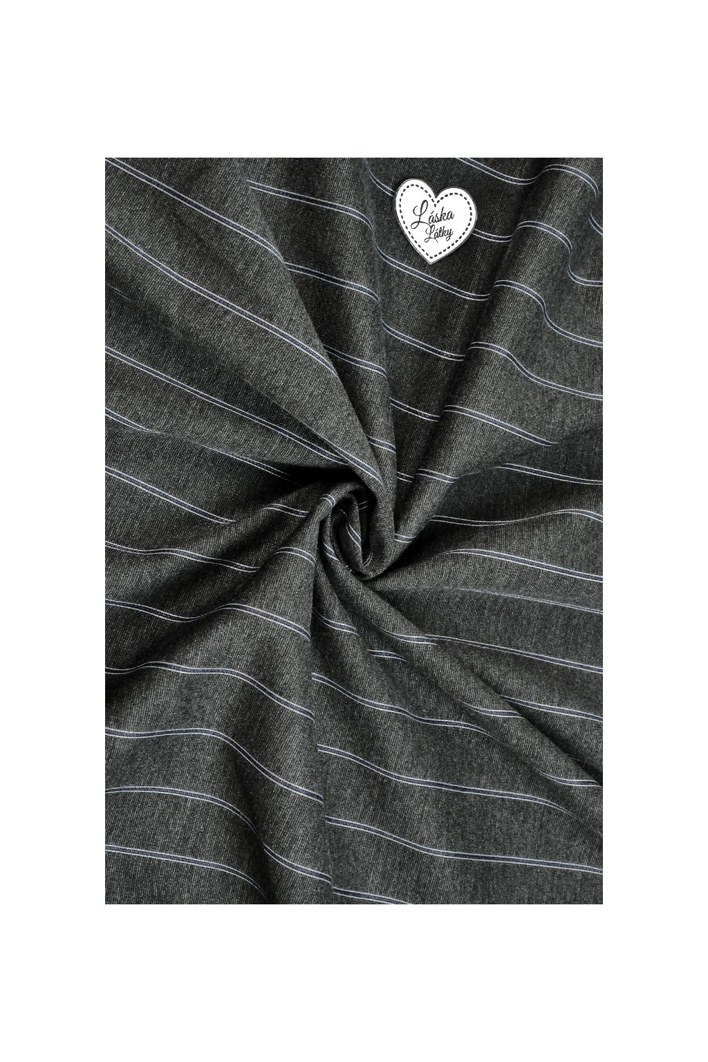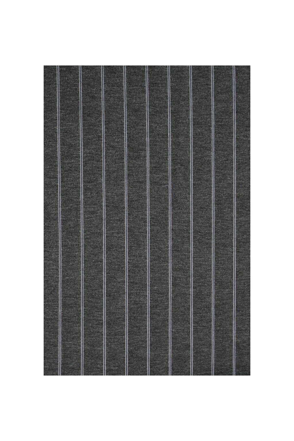 Elegantní a kvalitní viskózový úplet typu Punto di Roma v tmavě šedém tónu, oživený tenkými proužky v bílé a modré 🤍💙. Materiál působí luxusně na pohled i na omak. Příměs polyamidu zajišťuje vyšší odolnost a perfektní tvarovou stálost – žádné žmolky, žádné vytahování!