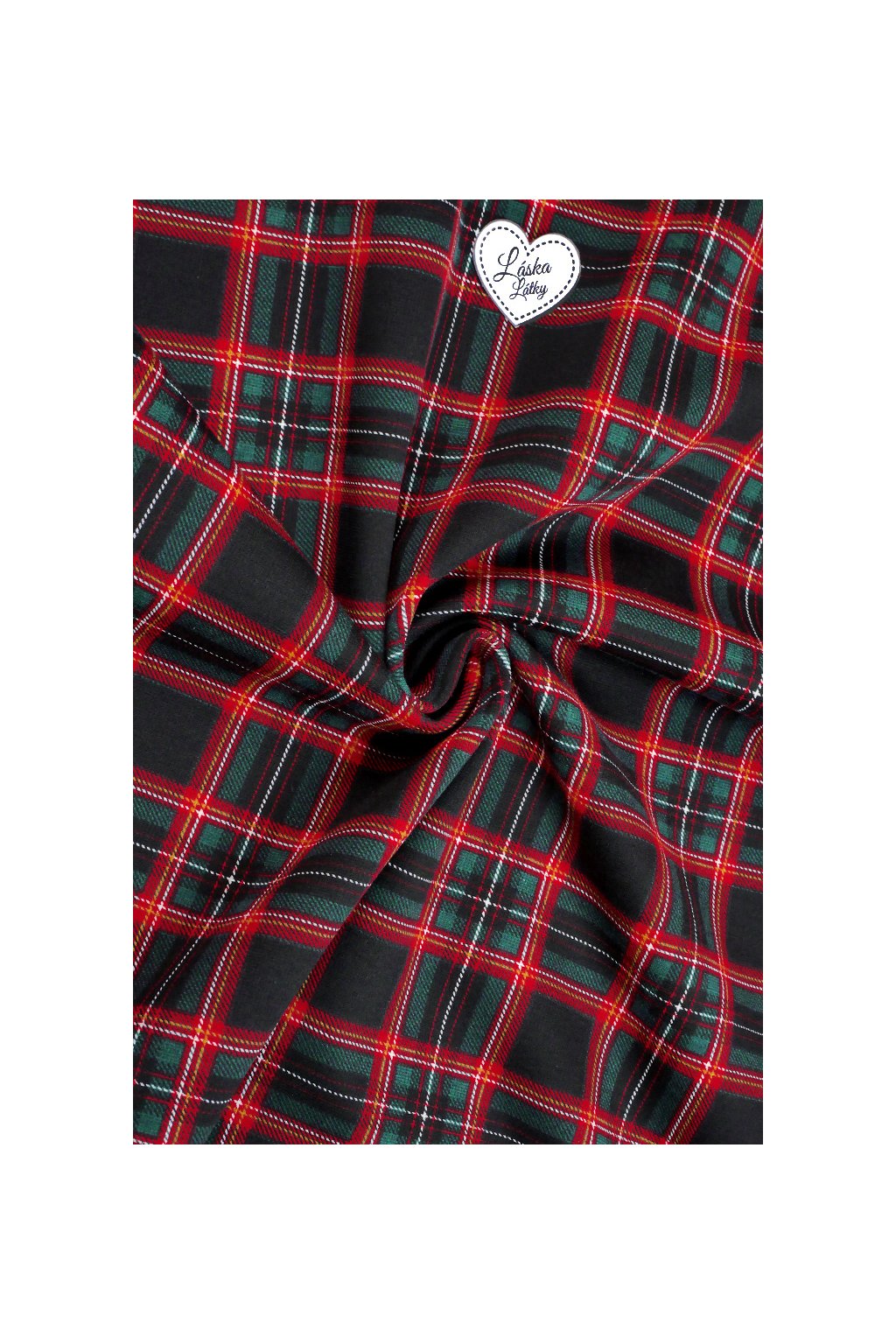 Pevnější viskózový úplet typu Punto di Roma s klasickým tartanovým vzorem v kombinaci žluté, tmavě zelené, červené a bílé. Materiál působí luxusně na pohled i na omak. Příměs polyamidu zajišťuje vyšší odolnost a perfektní tvarovou stálost – žádné žmolky, žádné vytahování!