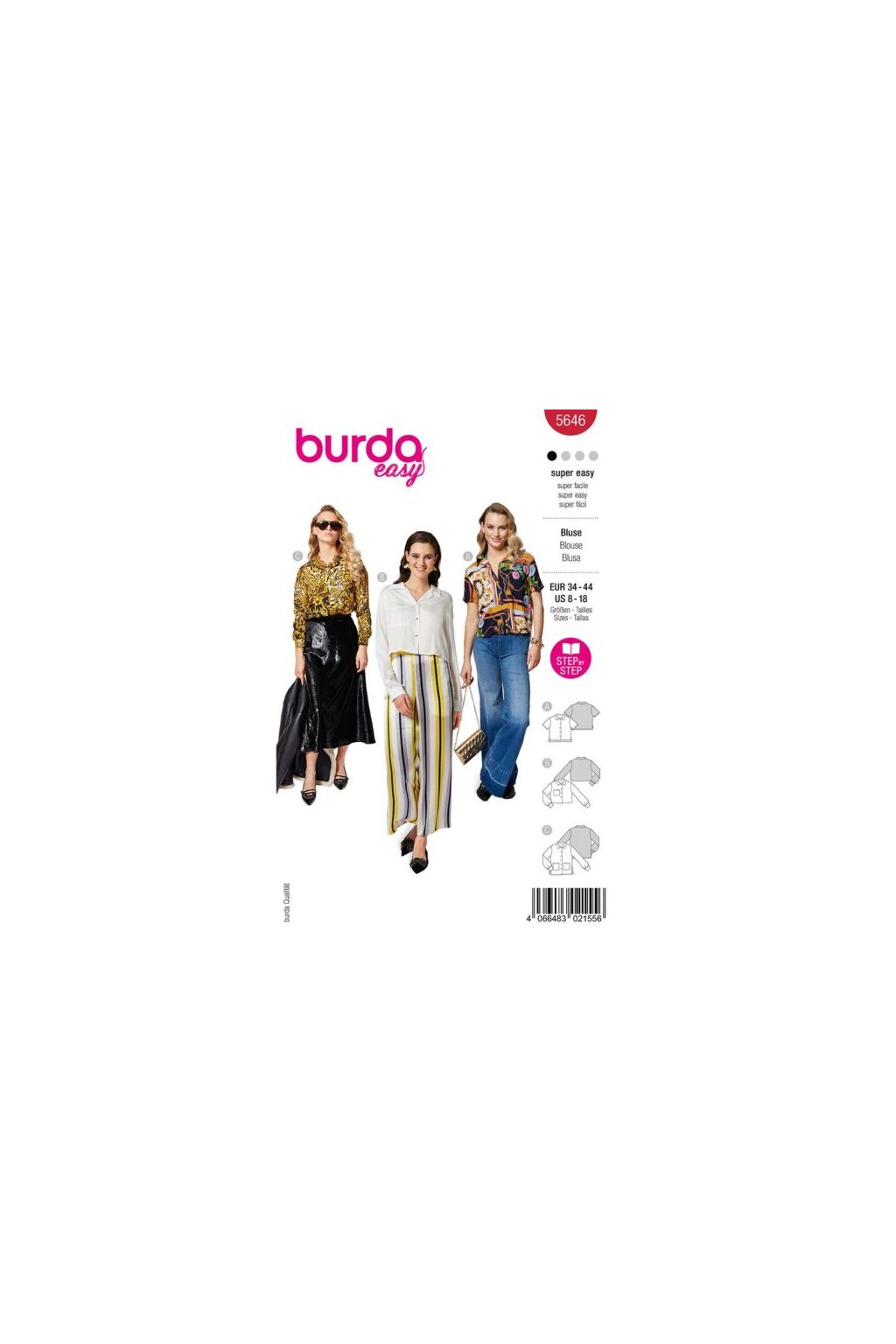 Střih dámských blůz ve třech variantách.