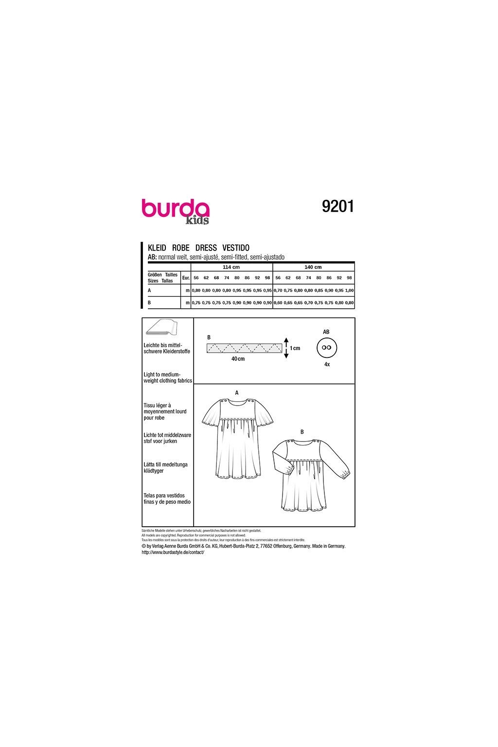 Střih dětských šatiček ve dvou variantách