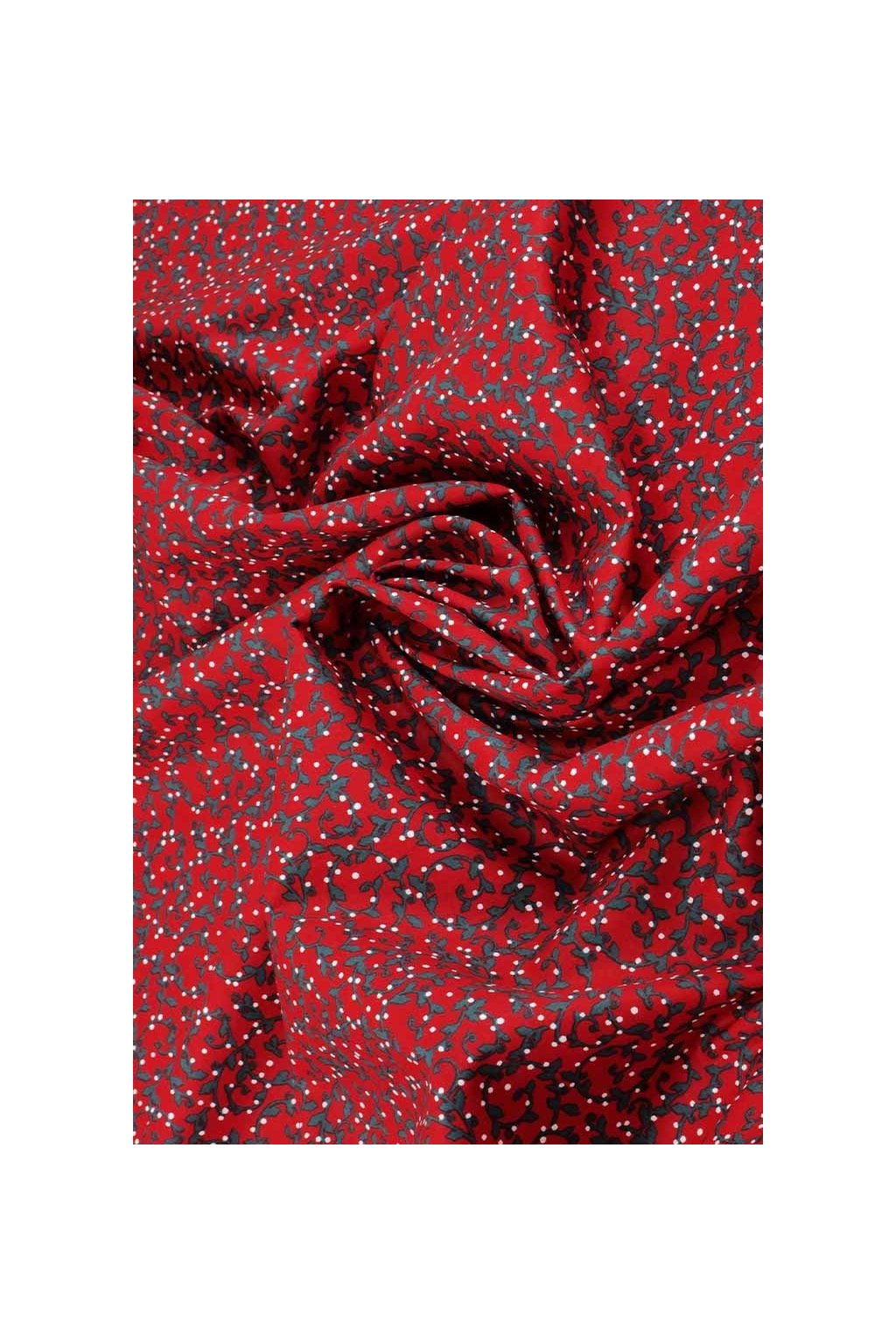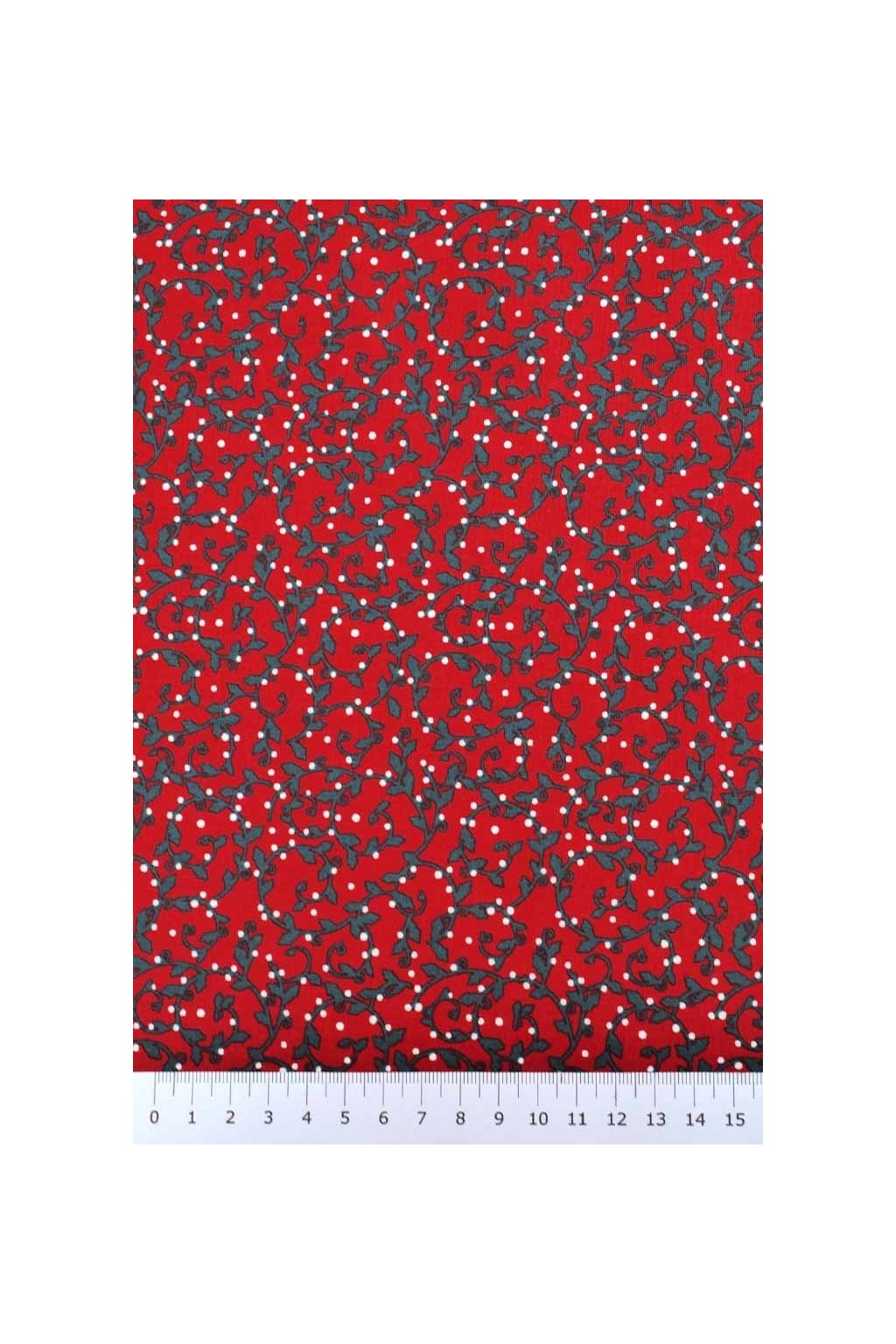 Příjemná vánoční bavlna červené barvy s motivem jmelí.