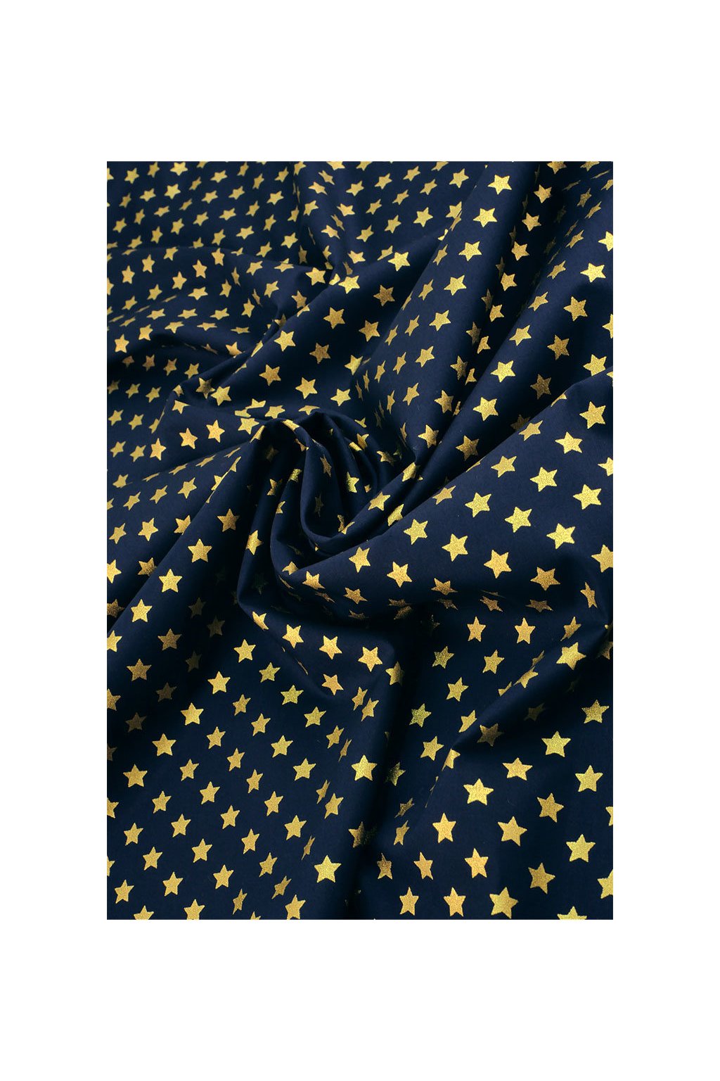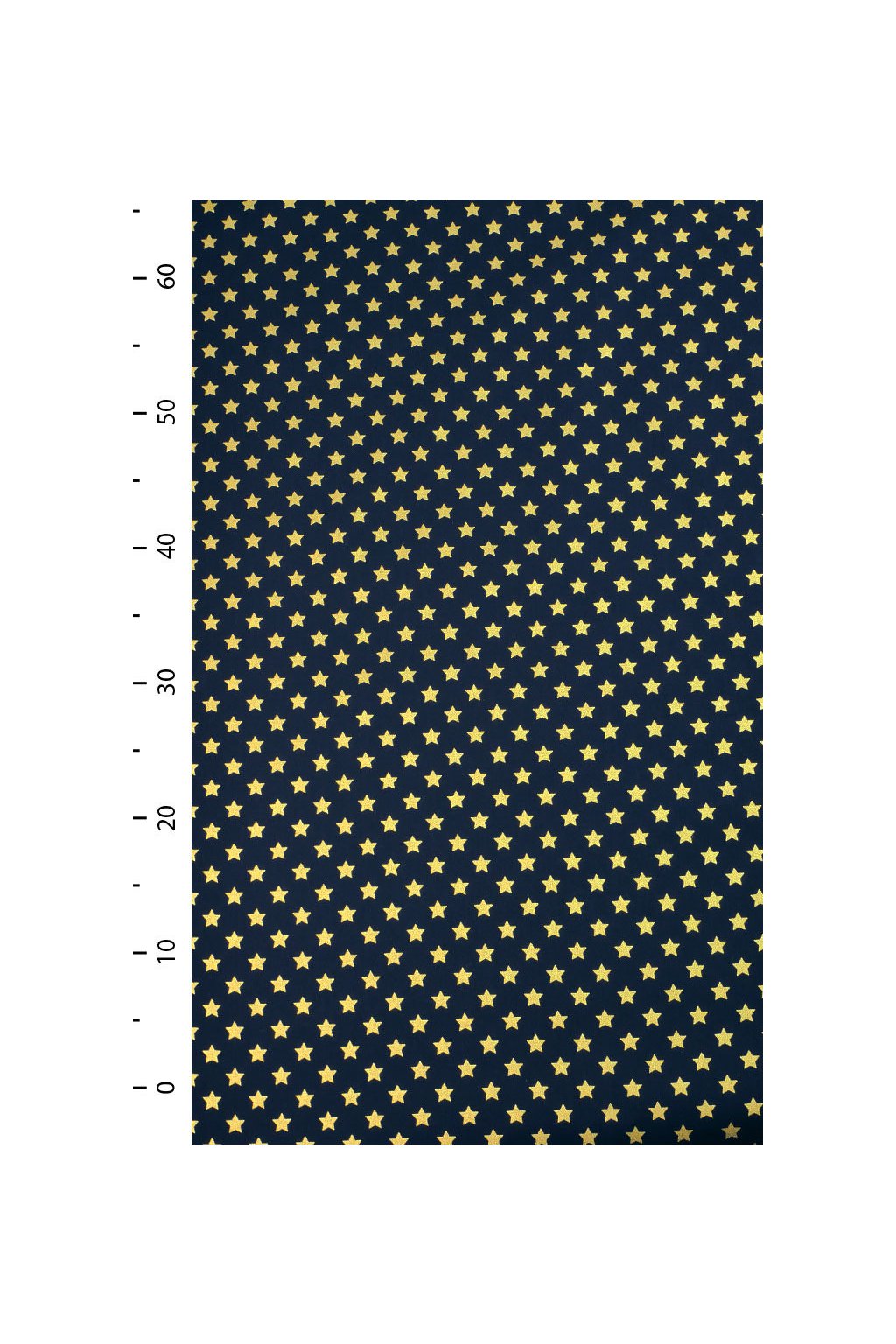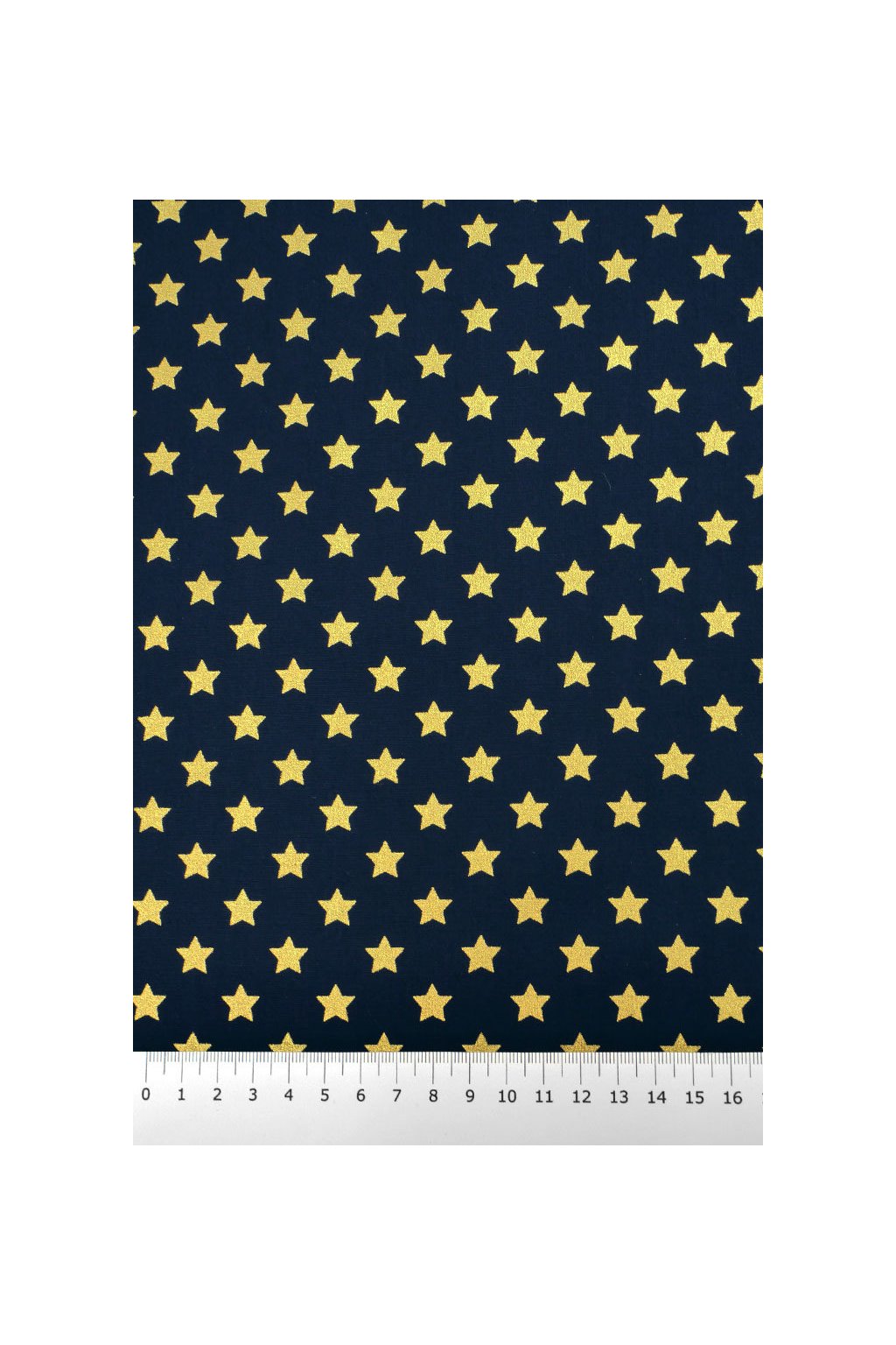 Příjemná vánoční bavlna modro-černé barvy s motivem zlatých hvězd.