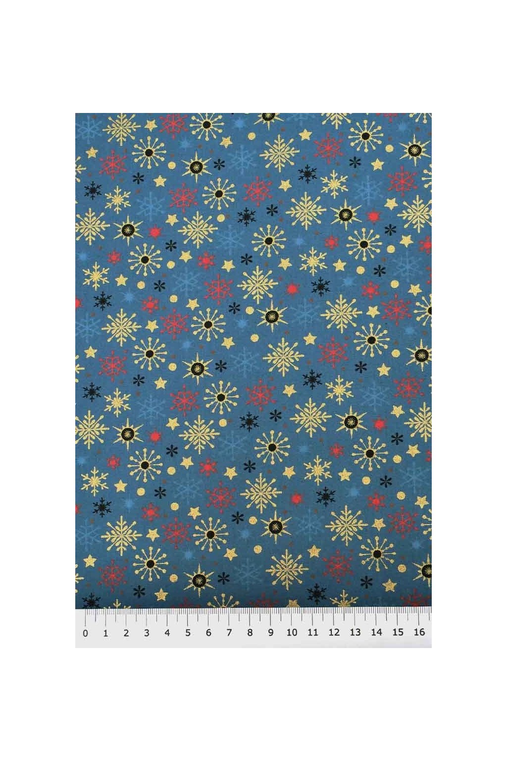 Příjemná vánoční bavlna modro-šedé barvy s motivem sněhových vloček.