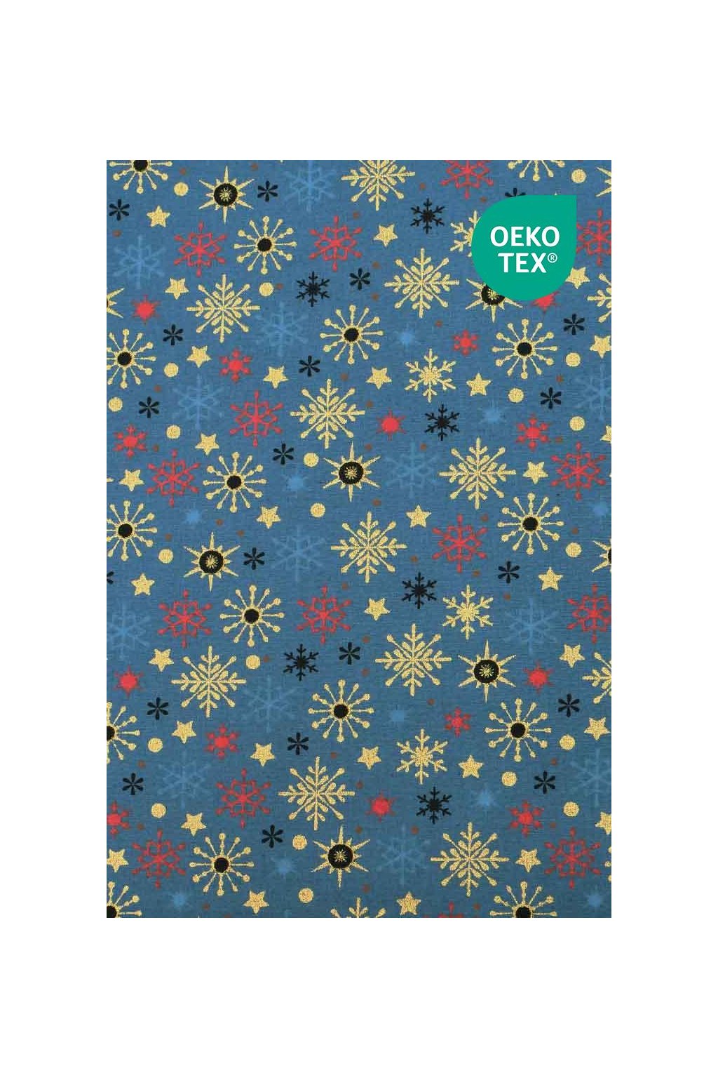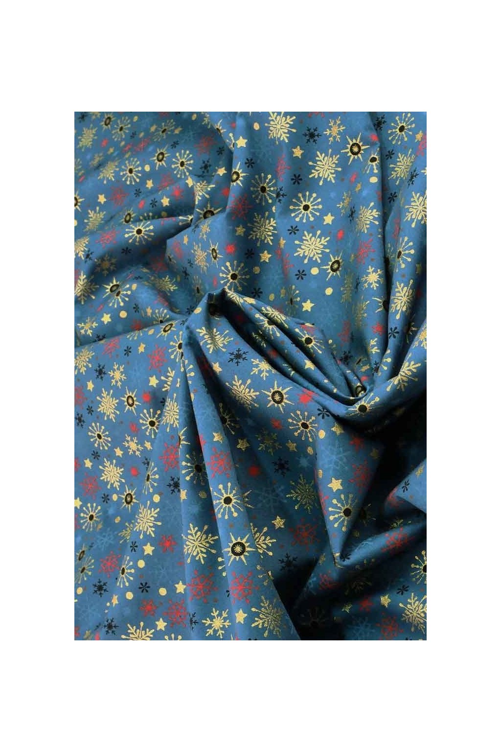 VÁNOČNÍ BAVLNA MODRO-ŠEDÁ VLOČKY