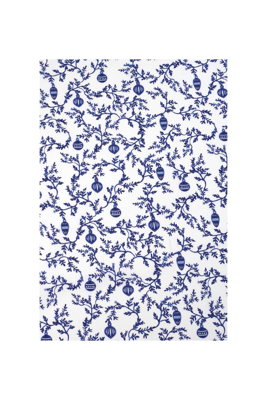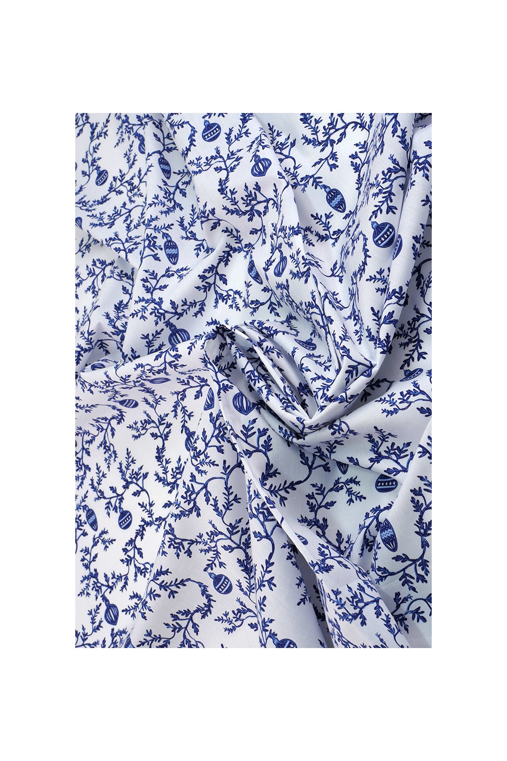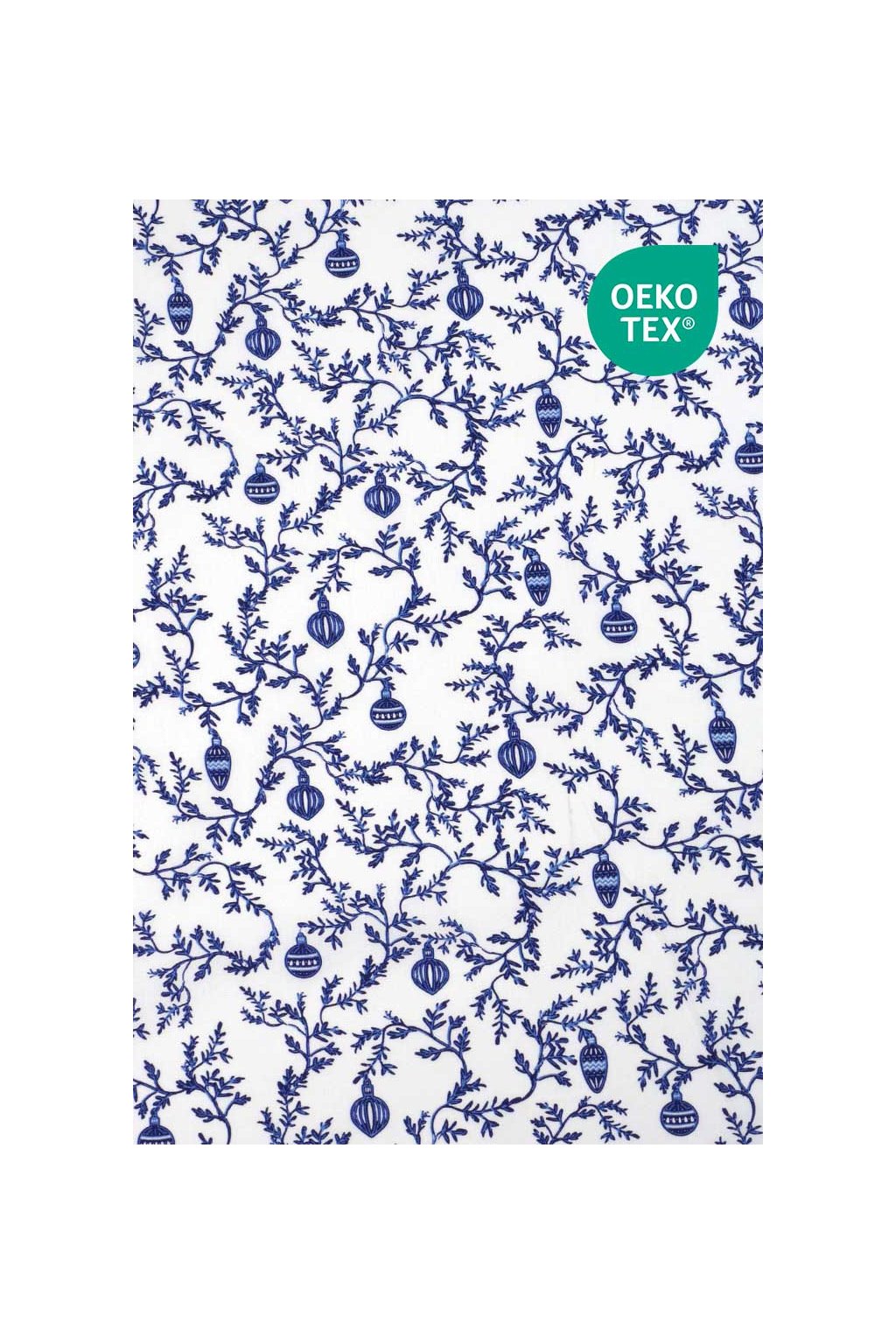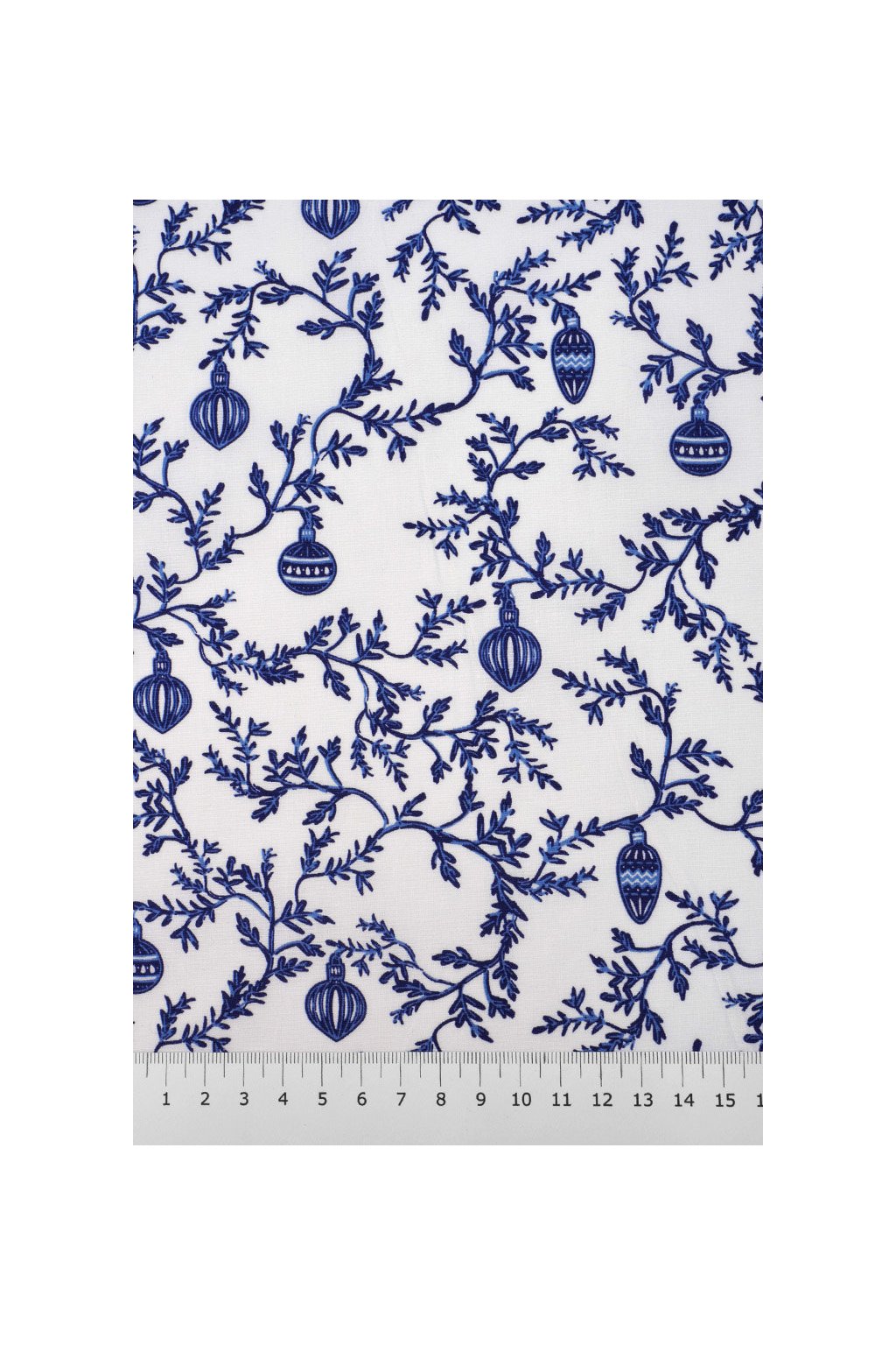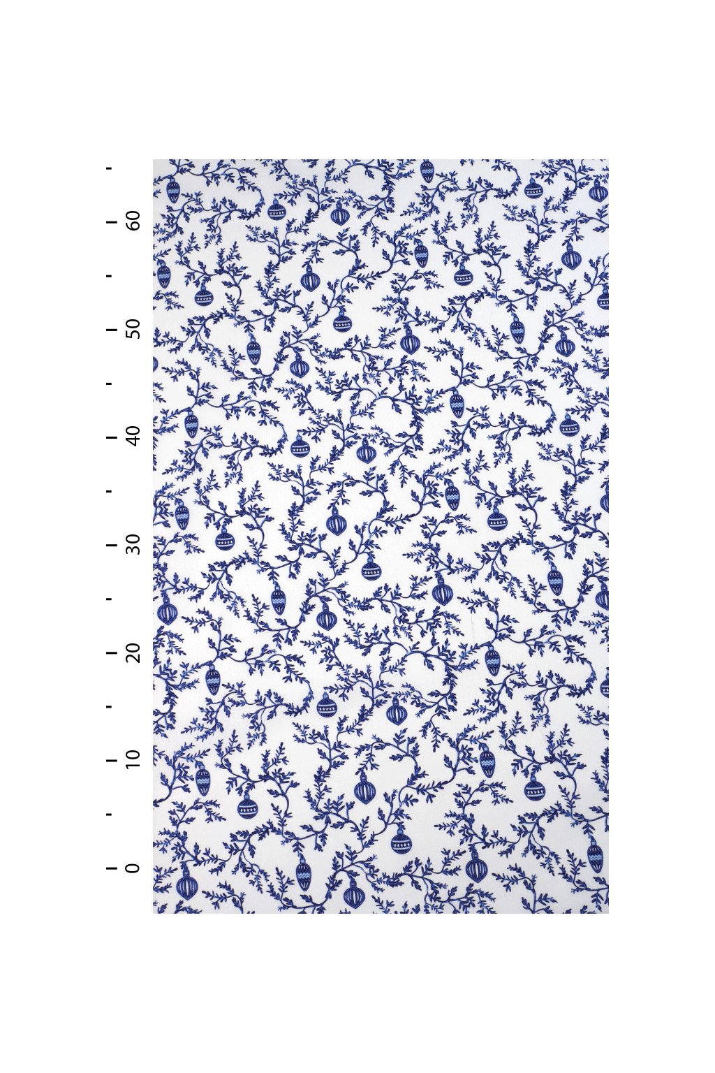 Příjemná bavlna bílomodré barvy s motivem vánočních ozdob.