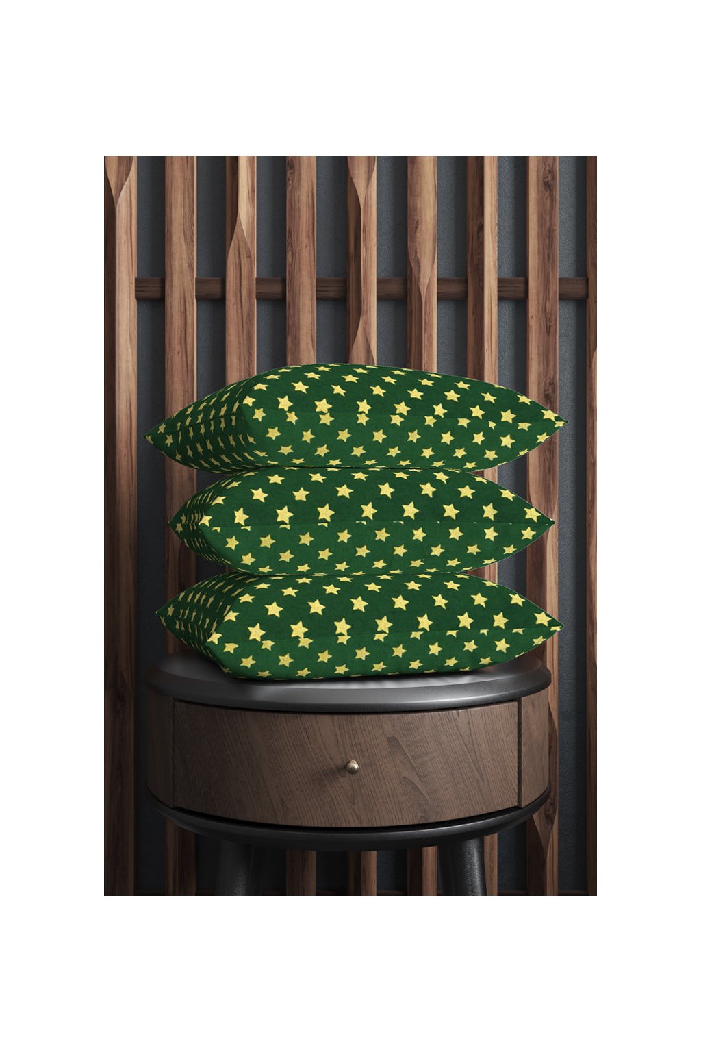 Příjemná vánoční bavlna smrkově zelené barvy s motivem zlatých hvězd.