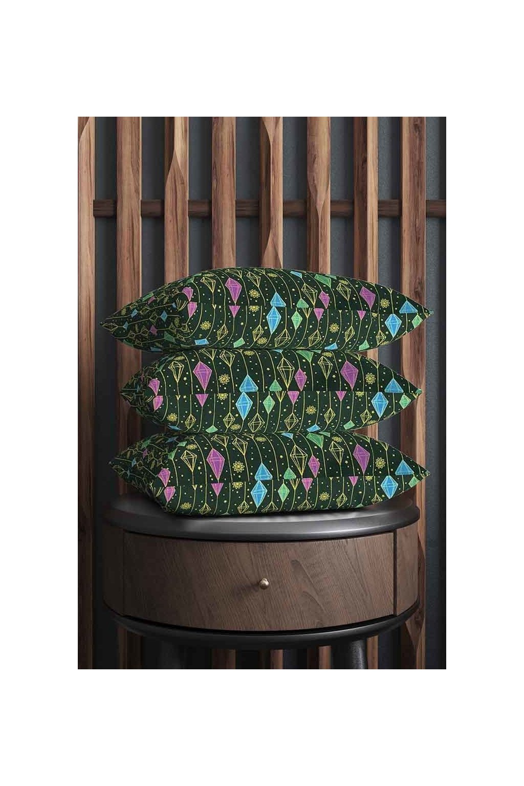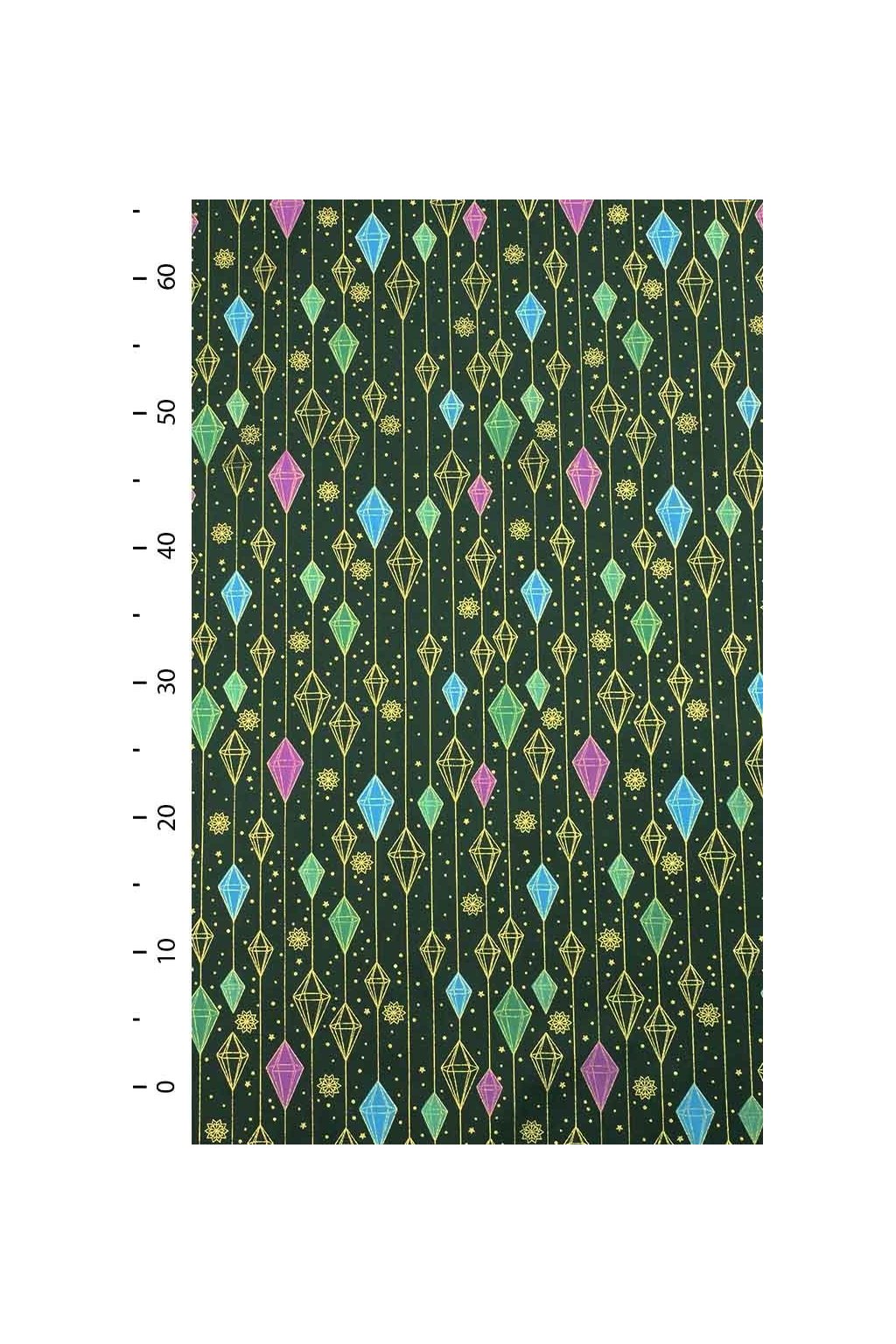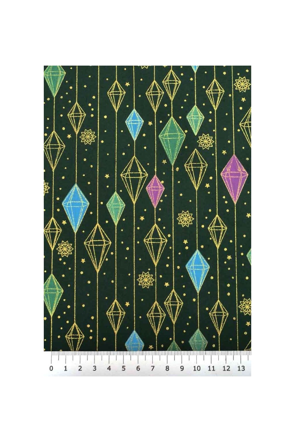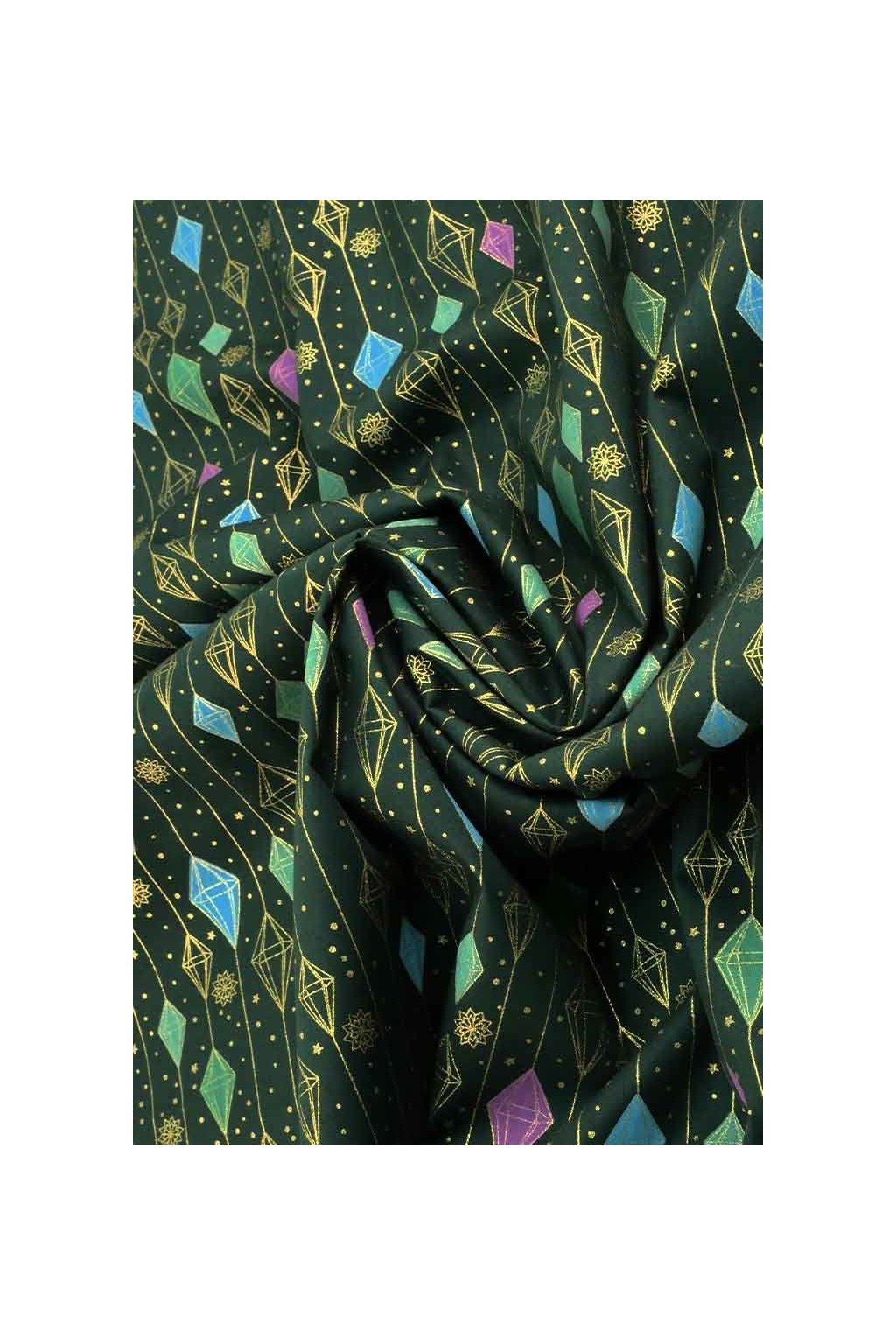 Příjemná vánoční bavlna tmavě zelené barvy se vzorem krystalových ozdob