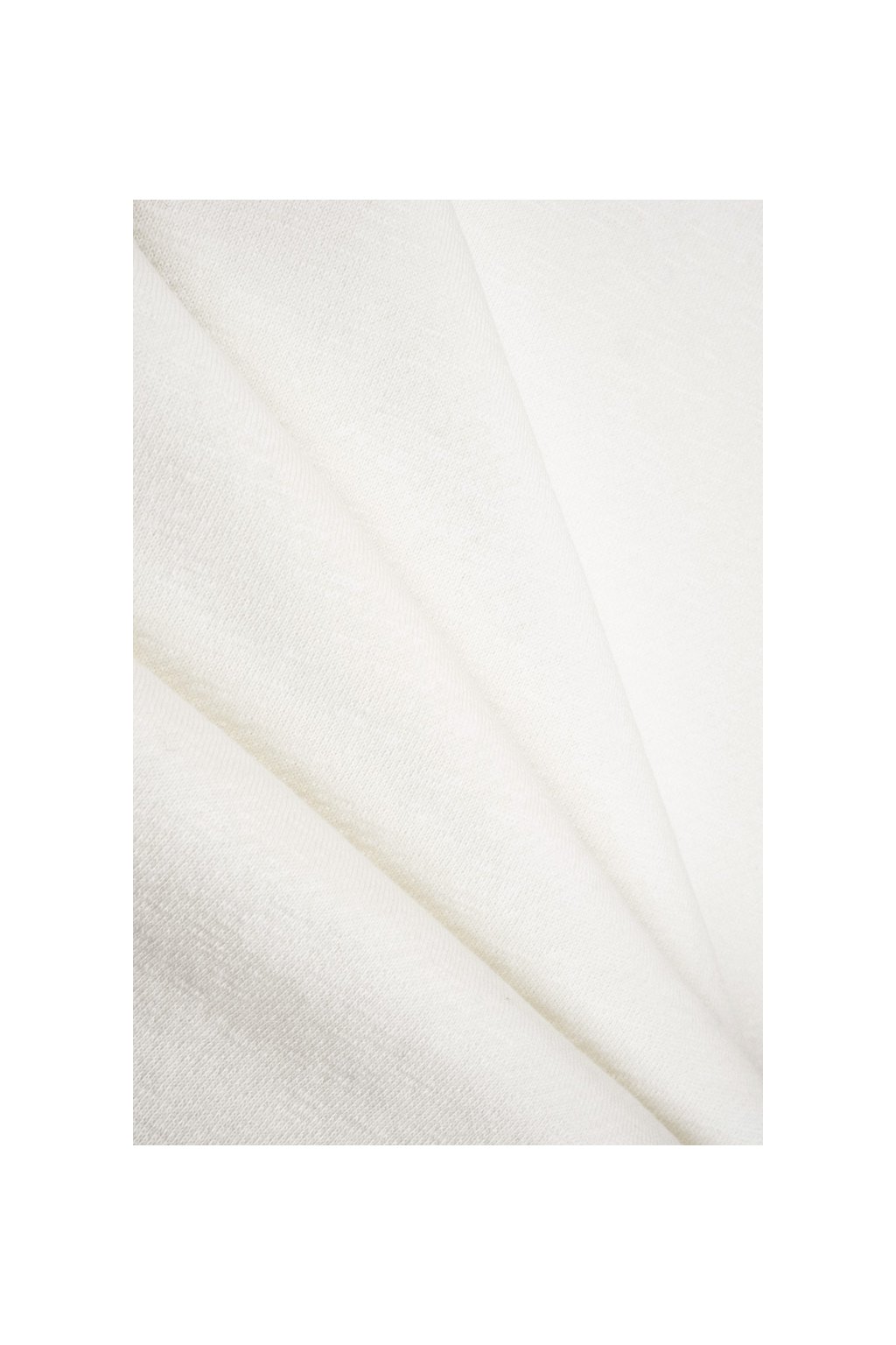 Bavlněná teplákovina (French Terry) v lomené bílé barvě. Rub má smyčkovou strukturu.