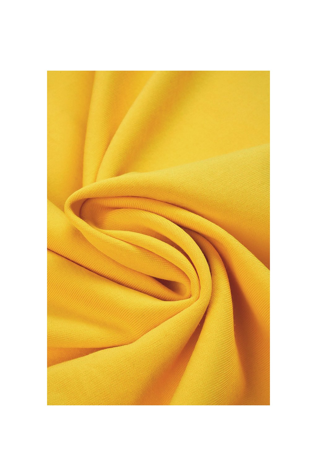 Bavlněná lehká teplákovina (French Terry) s příměsí nylonu zářivě žluté barvy. Rub má smyčkovou strukturu.